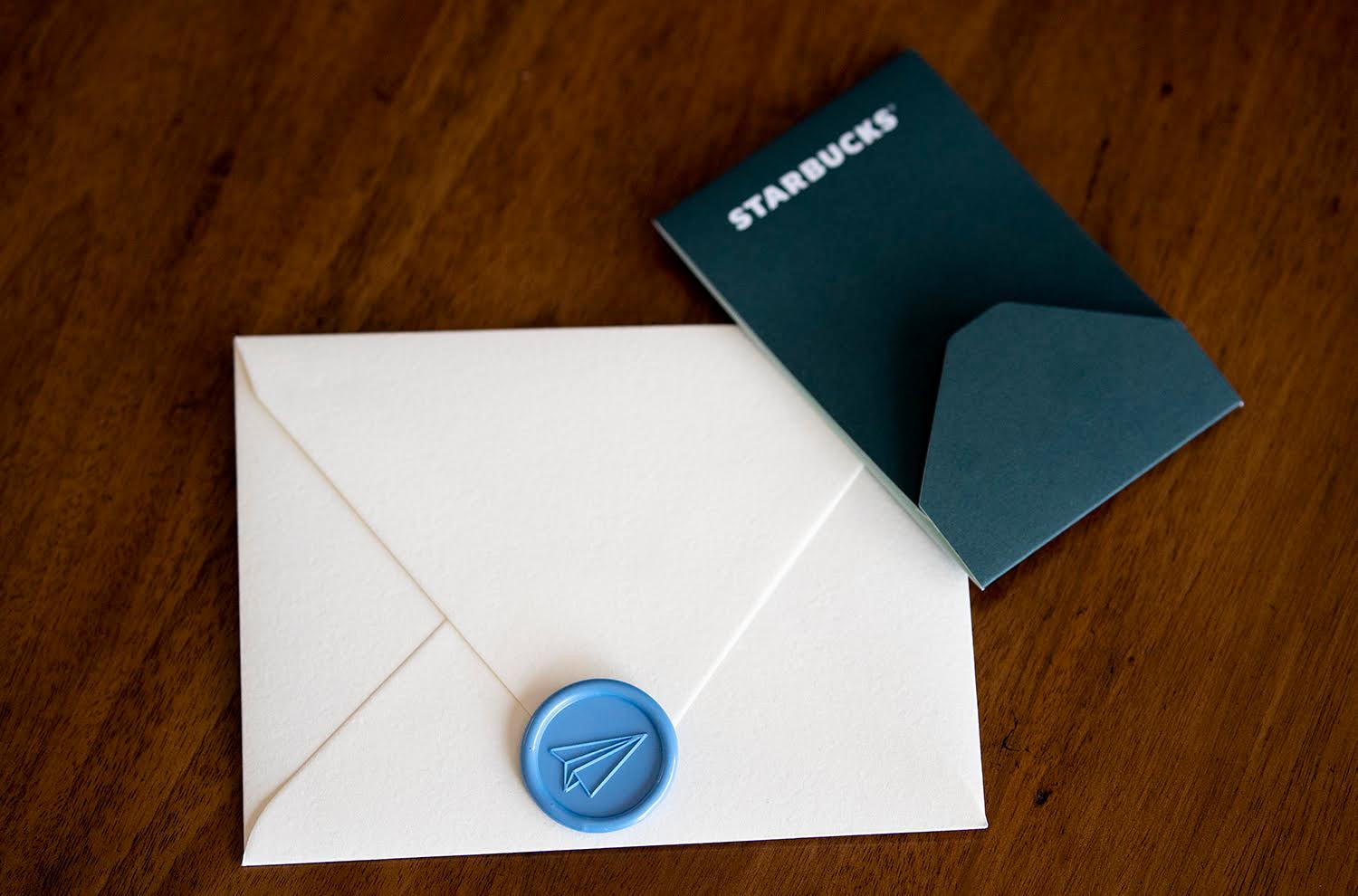 Add physical gift cards to your handwritten sends — we’ll shop, kit, and tuck them inside your envelopes, then handwrite, stamp, and mail. Choose from Starbucks, Amazon, UberEats, and more.