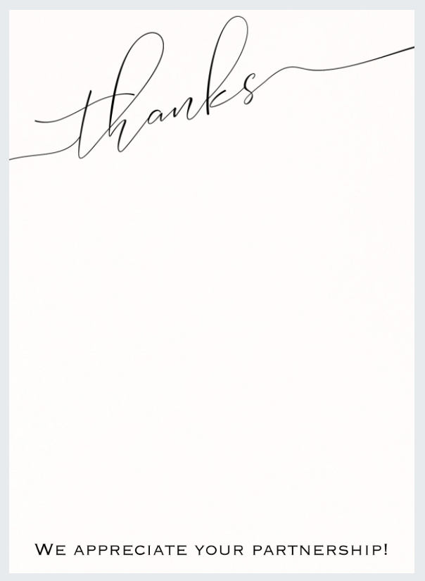 Stationery sends start at $6.50 per card — includes a neatly handwritten message and first-class US postage. Choose from our simple, modern stock (some examples shown above) or dropship your own stationery directly to us.